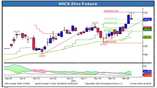 * Intraday Trading Strategy: Buy Zinc Dec Fut at 305.80-306 SL 303.75 Target 308.2/309.8.