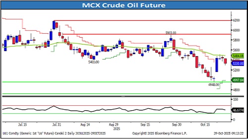 * Intraday Trading Strategy: Sell Crude Oil Nov Fut at 5365-5375 SL 5450 Target 5280/5225