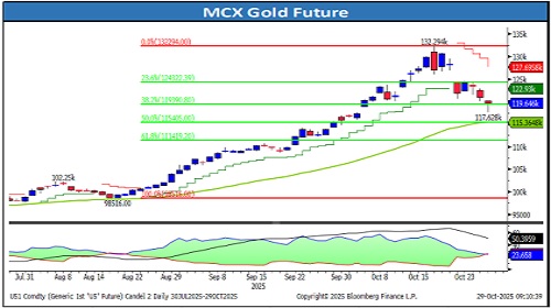 * Intraday Trading Strategy: Buy Gold Mini Dec Fut at 118450-118500 SL 117700 Target 120465/121050