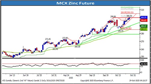 * Intraday Trading Strategy: Buy Zinc Nov Fut at 300.5 SL 297.0 Target 304.2/305.8.