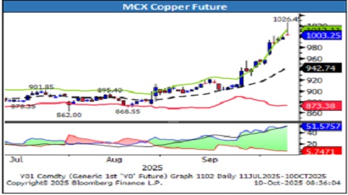 * Intraday Trading Strategy: Sell Copper Oct Fut below 1000 SL 1015 Target 980