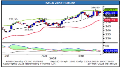 * Intraday Trading Strategy: Buy Zinc Oct Fut at 280-279 SL 277 Target 285