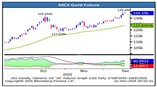 * Intraday Trading Strategy: Sell Gold Mini Jan Fut at 132,200 SL 132,800 Target 131,200