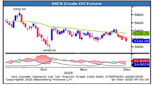 * Intraday Trading Strategy: Sell Crude Oil Dec Fut on bounce at 5170 SL 5250 Target 5050