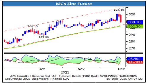 * Intraday Trading Strategy: Sell Zinc Dec Fut above 309 SL 313 Target 303