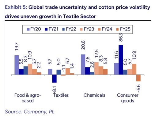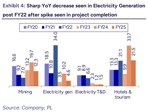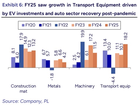 According to PL Capital’s quant thematic report, an analysis of long term gross fixed assets (GFA) suggests that gross fixed asset addition in five-year block period has been strongest during FY20-25 post FY10. In particular, construction material, electricity generation and consumer goods led the addition. Metals have been on a downward trend in past two five-year periods. On the contrary, the chemical sector has been adding capacity in past two five-year periods, which is likely to give growth once demand recovery happens.