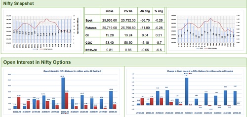 Highest OI build-up is seen at 26000 strike Calls and 26000 strike Puts, to the tune of 26.95mn and 14.16mn respectively - Nirmal Bang Ltd