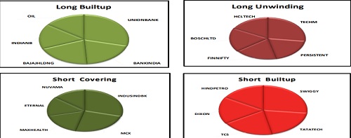 The above second chart shows previous trading day’s change in Nifty options where Additions in OI were seen in 26500, 26400, 26200, 26000, 26800, 25700 strike Calls and at 25800, 25700, 25600, 25500 strike Puts indicating market is likely to remain range bound in near term.