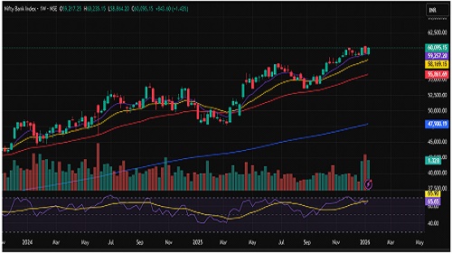 The Nifty index witnessed strong bearish momentum during the week, declining sharply after a negative start and registering a weekly low of 25,623, erasing nearly 645 points. On the weekly chart, the formation of a bearish engulfing candle has completely wiped out the previous week’s gains, indicating a potential short-term trend reversal and heightened selling pressure. The presence of five consecutive red candles further highlights sustained distribution and weakening sentiment at higher levels.