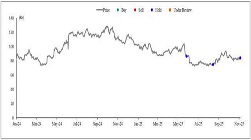 The management’s renewed focus on profitability marks a positive shift. Its strategy of expanding the product lineup through new launches and acquisitions, strengthening brand positioning, and driving digital transformation to increase online sales, including next-generation, digital-first brands under the technology-driven ‘House of D2C Brands’ venture, TMRW, should support long-term growth. However, these initiatives will take time to yield full results. Meanwhile, post-demerger, near-term execution will be key to unlocking value. Hence, we adopt a “Wait and Watch” approach and maintain our HOLD rating on the stock with a revised TP of Rs 90/share, implying a 7% upside from the CMP.