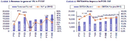 With US tariff issues now resolved, the Fluoropolymers business is expected to lead overall growth. However, the Battery Chemicals business may take longer than anticipated to make a meaningful contribution to the topline; LiPF? is expected to be the only key contributor in FY27. The stock is currently trading at 40x FY28E EPS. We value the stock at 45x Dec’27E EPS, with TP of Rs3,434, and maintain ‘HOLD’ rating.