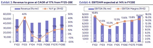 * EBITDAM decreased by 160bps QoQ due to lower realisations: EBITDA stood at Rs1,355mn, up 8.8% YoY but down 4.7% QoQ, with EBITDA margin at 12.1% (vs 11.9% in Q2FY25 and 13.7% in Q1FY26; PLe: 12.8%), reflecting a 20bps YoY improvement driven by a higher Specialty mix. PAT rose to Rs695mn, marking 17.7% YoY increased but decreased 7.5% QoQ, with a PAT margin of 6%.