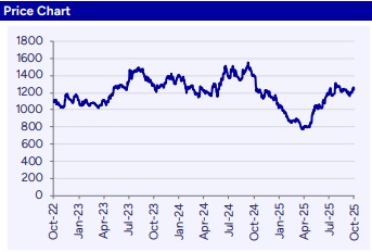 We have revised our FY27/28 earnings estimates upward by 0.4%/0.7% mainly with improvement in margins on account of cost saving with distribution consolidation, integration of tiles divisions and the discontinuation of low margin tiles. We had maintained our rating to ‘HOLD’ we value the stock at 36x Sep’27E EPS to arrive at revised TP of Rs1,288 (earlier Rs 1,281). The management has refrained from providing guidance due to prevailing low demand conditions but expects to outperform the industry in FY26. KJC expects decent growth in Bathware and Adhesives segment in FY26 and gradual pick up in domestic volumes as exports is expected to reach to FY24 levels. We have considered 5.2% CAGR in tiles volume over FY25-28E with EBITDA margin of 17.0% in FY28. Management indicated gradual pick-up in FY26 volumes, revival in exports due to lower freight rates, and expected improvement in margins, as the company works on cost rationalization and exits the low-margin plywood business. KJC expects to outperform the sector in volume growth once again through 1) increase outsourcing volume, 2) increase in dealer penetration & showrooms, 3) expansion in product portfolio, 4) intensify focus on govt. projects, and 5) improve business efficiency. We expect Revenue/EBITDA/PAT CAGR of 7.1%/15.7%/21.5% over FY25-28E. Maintained ‘HOLD.’