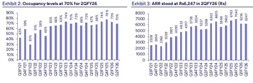 Con-call highlights: 1) Aurika, Nehru Place is likely to generate an IRR north of 15%. 2) Once operational, Aurika, Nehru Place is expected to generate ~Rs1.5bn of EBITDA, with one-sixth payable to the DDA. 3) During the quarter, Gurgaon’s RevPAR declined 9.0% YoY, as several rooms were temporarily closed due to renovations. 4) October’25 witnessed a 4% drop in occupancy, mainly impacted by festive season. Despite a weak October, revenue growth is expected to be in mid-teens for 3QFY26E. 5) EBITDA margins in FY26E are expected to remain in line with FY25 levels. 6) Aurika, MIAL’s negotiated room nights rose from 256 in 2QFY25 to 320 in 2QFY26. Retail/MICE room nights also increased from 80/19 to 180/41 over the same period. 7) In the first 45 days of 3QFY26E, Aurika, MIAL’s revenue was up ~30% YoY. 8) 1,600 rooms are slated for renovation by next year at an average cost of ~Rs1mn per room. 9) LEMONTRE IN has signed two new properties with RJ Corp Ltd, namely Lemon Tree Premier, Ayodhya and Lemon Tree Premier, Guwahati. Both hotels will be developed by RJ Corp, with LEMONTRE IN providing technical expertise. For this LEMONTRE IN would charge a fee of ~Rs150mn per property, along with a management fee of ~9% on revenue. 10) RJ Corp will also hold a 50% stake in Aurika, Shillong. 11) Aurika, Shillong is expected to open by mid-2027E. 12) The construction timelines for Aurika, Shimla has been deliberately delayed. Renovation of existing rooms was given priority over Aurika, Shimla.