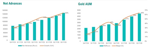 * Gold loan yield stood at 20.34% in Q3FY26, supported by one-off NPA recoveries. On a normalized basis, yields are expected to remain in the 18.5–19.0% range. Meanwhile, management has raised FY26 gold loan growth guidance to 45%.