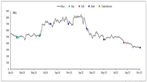 Valuation & Recommendation: Our revised estimates indicate a materially slower growth trajectory over the next few quarters, with recovery expected once customers gain clarity on their sustainable investment plans. We have rolled forward our estimates and now value the stock at 20x Sept’27E (earlier 20x FY27E), translating into a TP of Rs 340/share (revised down from Rs 350/share), implying an upside of 1% from the CMP. We upgrade our rating on the stock from SELL to HOLD as the key headwinds appear to be largely factored in.