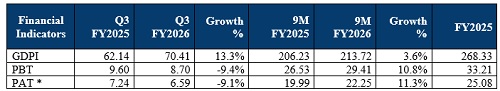 * PAT on a n basis grew by 13.8% to Rs.22.22 billion in 9M FY2026 compared to Rs.19.53 billion in 9M FY2025. Excluding impact of Wage Code on a 1/n basis PAT for 9M FY2026 was Rs.22.67 billion, registering a growth of 13.4%. Excluding impact of Wage Code on n basis PAT for 9M FY2026 was Rs.22.64 billion, registering a growth of 15.9%.