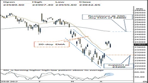 * Key point to highlight is that, index has confirmed conclusion of corrective phase by fulfilling prerequisites like close above its last week’s high, sustenance above short-term moving average. In addition to that, faster pace of retracement (as 13 sessions decline entirely retraced back in just 4 sessions), highlights structural turnaround. Hence, formation of higher base amid ongoing consolidation would set the stage for heading towards 24800 in coming weeks