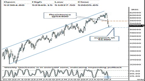 * Index is likely to open with a positive gap-up tracking positive global cues. Structurally Since March 2022,Index has been trading in upward rising channel(51000). In current scenario also Index has witnessed a sharp reversal from its lower band of rising channel, signaling buying demand emerging around its key long-term support.