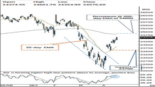 * Nifty is likely to open gap-down on back of volatile geopolitical cues A key highlight of the session was Bank Nifty which carries a 35% weightage in the benchmark closing above its long-term 200-day EMA for the first time in 28 trading sessions. This relative outperformance provided the necessary momentum for the Nifty to clear the key 24,500 hurdle. Looking ahead, we reiterate our stance and expect index to resume its upward momentum and head towards 24800 being its 200-day EMA.