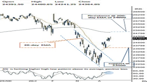 * The Index has approached its previous breakdown support near 24,500, which is now acting as immediate resistance according to the change of polarity principle.