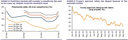 Revising macro forecasts as geopolitical risk premium keeps oil market hot The West Asia conflict is entering a more precarious phase, despite recent news around potential deescalation. Recent attacks on energy infrastructure have heightened the risk of broader and persistent supply disruptions. India faces an adverse terms-of-trade shock from rising energy prices, with ~45%/55% of crude oil/gas imports from the region and limited domestic strategic reserves. Besides, a protracted conflict implies a broader supply shock, global stagflationary tail risks and heightened volatility, impacting India’s exports, remittances (~40% from ME) and capital flows. Early signs of strain in domestic gas supply are visible, while short-term inelastic oil demand constitutes a direct macro shock. We revise our baseline macro forecasts, basis Brent averaging ~USD80/bbl, up 15% from earlier. We reckon that while oil and natural gas prices have edged higher, they remain well below levels that would typically reflect a shock of this scale and duration. Brent at USD80-85/bbl will be mostly manageable, while the macro impact will be more acute and non-linear if prices average north of USD100/bbl. With the revised oil forecast, we lower baseline FY27E real GDP growth by 0.4pp to 6.6%, and raise headline inflation and CAD/GDP by 0.3pp to 4.3% and by 0.4pp to 1.7%, respectively. Our dynamic scenario analysis suggests that with average Brent at USD100/bbl for FY27E, CAD/GDP could widen to >2.4% while the BoP deficit could worsen to >USD85bn.