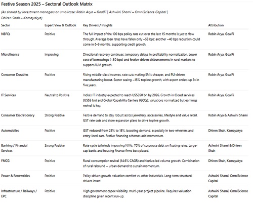 Dhiren Shah, Investment Manager on smallcase and Director & Co-founder, Kamayakya said, “As we enter the festive season of 2025, India's financial markets present a complex yet promising landscape shaped by significant policy reforms, global headwinds, and domestic resilience. The combination of GST 2.0 implementation, infrastructure-led growth momentum, and evolving global dynamics creates unique investment opportunities while demanding careful navigation of emerging challenges.”
