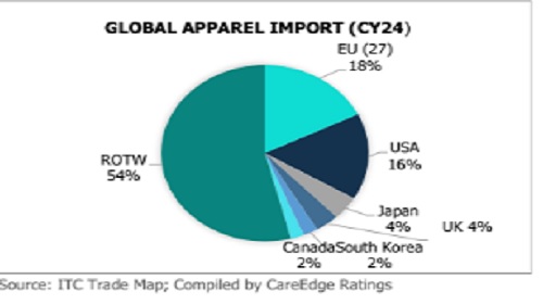 stated Krunal Modi, Director at CareEdge Ratings. He further added that India is expected to surpass RMG exports of US$20 billion in CY27 even if elevated US tariffs are sustained, as benefits kick in from various bilateral trade deals with the UAE, Australia, European Free Trade Association (EFTA), the UK, Oman, New Zealand and the EU. “With a 12% duty advantage over China post implementation of the India-EU FTA, level playing field vis-à-vis other major competing nations and prevailing socio-political uncertainties in Bangladesh, India is well-positioned to gradually increase its market share in the EU’s RMG market from 5% to 8-9% over the medium term. The India– EU FTA is expected to unlock nearly US$4-4.5 billion of incremental annual export opportunities for the RMG sector and act as a catalyst for large-scale investments across the textile value chain, generating employment, particularly for women and enhancing foreign exchange earnings for the country,” said Ranjan Sharma, Sr. Director at CareEdge Ratings.