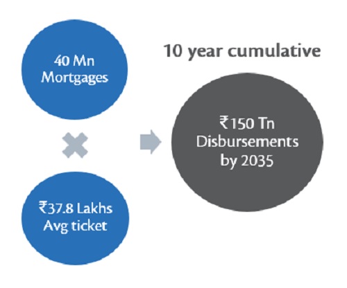 The report estimates a cumulative disbursement opportunity of ~Rs.150 trillion by 2035 even under conservative assumptions of 40 million urban mortgages demand and an average mortgage loan value of ~38 lakhs.