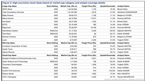 * Underperformers to Nifty: Camlin Fine Sciences (ADD), Tata Consultancy Services (ADD), and Lupin (ADD).