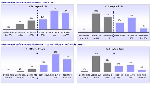 * While about 76% of Nifty-500 constituents rose in CY24, nearly 55% posted declines in CY25.