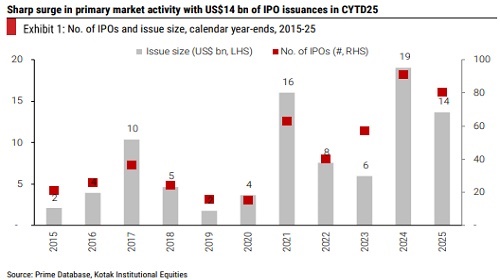 US$14 bn of equity issuance through IPO in CYTD25; US$19 bn in 2024