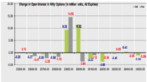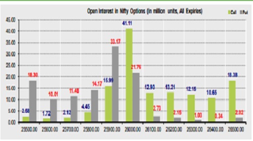 * Highest OI build-up is seen at 26000 strike Calls and 25900 strike Puts, to the tune of 41.11mn and 33.17mn respectively