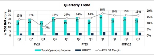 Following sharp inventory destocking and price correction in FY24, the industry witnessed a clear improvement in FY25, with total operating income of the top 24 listed players growing by approximately 9% year-on-year, supported by volume recovery, easing of channel destocking, and stabilisation in demand across key export markets. Operating performance strengthened in tandem, driven by lower raw material costs, improved capacity utilisation, better product mix, and operating leverage benefits.