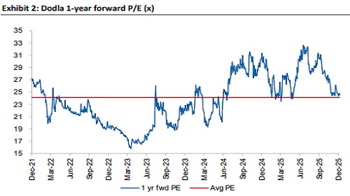 We prefer Dodla Dairy (BUY, TP Rs 1,530) in the space, noting its (1) strong growth momentum in low-teens spearheaded by India VAP and Africa businesses (FY25- FY28E revenue CAGRs of 15%+ and 18% respectively), (2) sustained product-mix improvement leading to firm realizations, (3) incremental revenue visibility from the greenfield Maharashtra plant, (4) accretion from recent Osam acquisition and (5) sustenance of medium-term margins near-10% with better mix (VAP/ Africa growing faster vs base milk business) and lower bulk sales (sold at breakeven) despite higher expansion-related costs. We expect overall revenue/ PAT CAGR of 13%/ 16% over FY25-FY28E; we value the stock on a P/E of 26x on September-2027E EPS. We maintain confidence on growth, sustainability of margins, enduring return ratios and deft geographic expansions opening up additional levers of growth.
