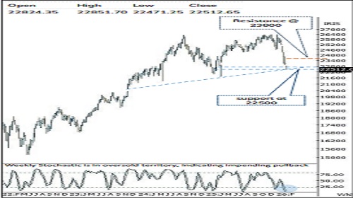 * Importantly, Over past four weeks 13% decline daily, weekly and weekly stochastic readings have slipped into extreme oversold territory, a zone that has historically coincided with exhaustion of selling pressure and impending mean reversion. However, intermittent bouts of volatility cannot be ruled out, with key support placed near the 22500 being yesterday’s pain low.