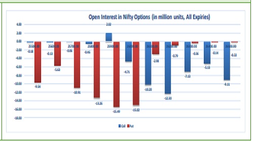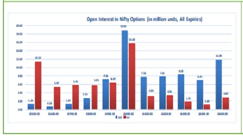 * Highest OI build-up is seen at 26000 strike Calls and 26000 strike Puts, to the tune of 18.85mn and 15.68mn respectively.