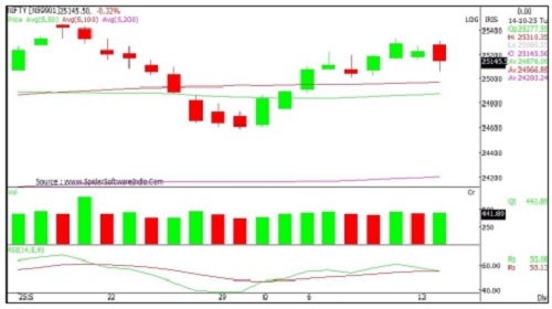 Action: Nifty has an immediate Resistance at 25280 and on a decisive close above expect a rise to 25400-25470 levels