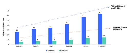 The share of B30 AUM in the industry AUM increased from 16% in Dec 2020 to 19% in Sep 2025.
