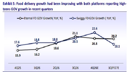 * Our estimates currently assume Zomato’s GOV growth at ~15.3%/18.0% in FY26/27E and Swiggy at ~20.2%/17.3%, supported by gradual market share gains and continued expansion across cities. ? However, if the commercial LPG shortage persists through the remainder of March, it could begin to reflect in a temporary decline in order volumes in 4Q.