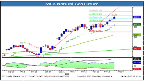 * Intraday Trading Strategy: Buy Natural Gas Dec Fut at 444.50-445.50 SL 437.80 Target 456/461.0