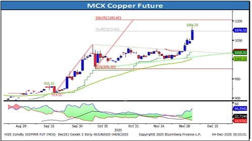 * Intraday Trading Strategy: Buy Copper Dec Fut at 1077-1077.80 SL 1070.0 Target 1094/1099