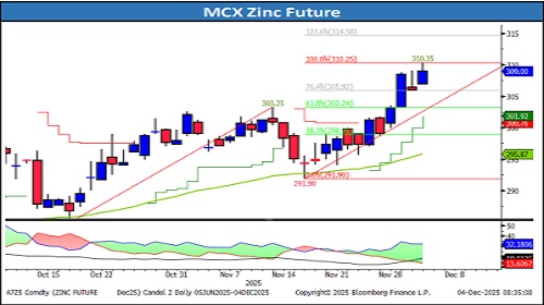 * Intraday Trading Strategy: Buy Zinc Dec Fut at 309-309.25 SL 306.8 Target310.75/312.0.