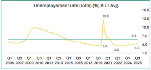 * The unemployment rate is on an upward trend, signaling potential stress in labor market.