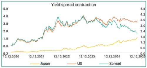 * Rising JGB yields and narrowing Japan-US 10-yr yield spread are increasing the risk of reverse carry trades.