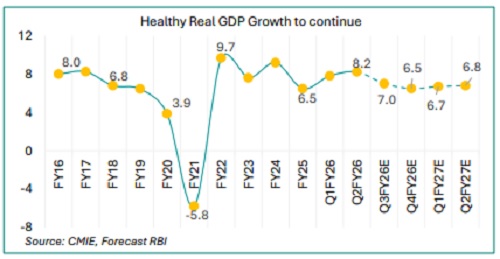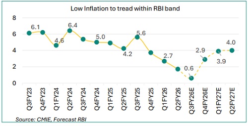 * Inflation is expected to edge higher during 2026 and remain within the RBI’s target range, supported by subdued oil prices and adequate food stocks.