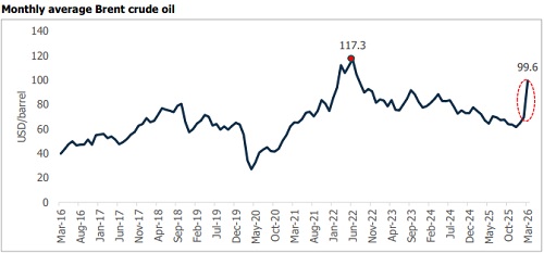 All eyes are on the Strait of Hormuz, a critical conduit for global oil and gas trade. Periodic restrictions on maritime passage, higher war?risk insurance premia, and elevated freight costs have reinforced concerns over the reliability of energy supply routes. Resultantly, global crude oil prices remain elevated and volatile, with risks leaning towards instability rather than normalisation.