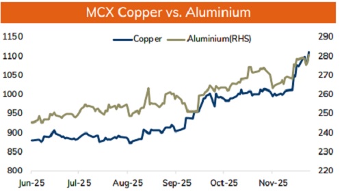* MCX Aluminum Dec is expected to rise towards Rs.285 level as long as it stays above Rs.275 level. Only a move below Rs.275, it would slip towards Rs.270. MCX Zinc Nov is likely to move higher towards Rs.325 level as long as it stays above Rs.314 level.