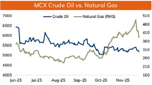 * MCX Natural gas Dec is expected to weaken further towards Rs.370 level as long as it trades under Rs.400 level. Forecast of warmer US weather would reduce heating demand.