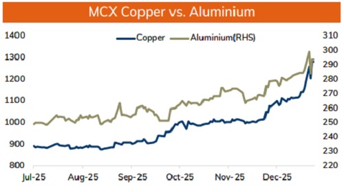 * Copper prices are expected to hold its ground and move higher, driven by acute supply tightness and robust demand from both China and the United States. Further, better than expected manufacturing activity from China would also bring optimism in prices. Rising copper premiums and planned output reduction for 2026 by China's leading copper smelters would support prices to move higher. Prices would also get support on concerns over potential US tariff reviews in 2026, which would again increase supply tightness in the global markets. Meanwhile, profit booking could limit its upside.